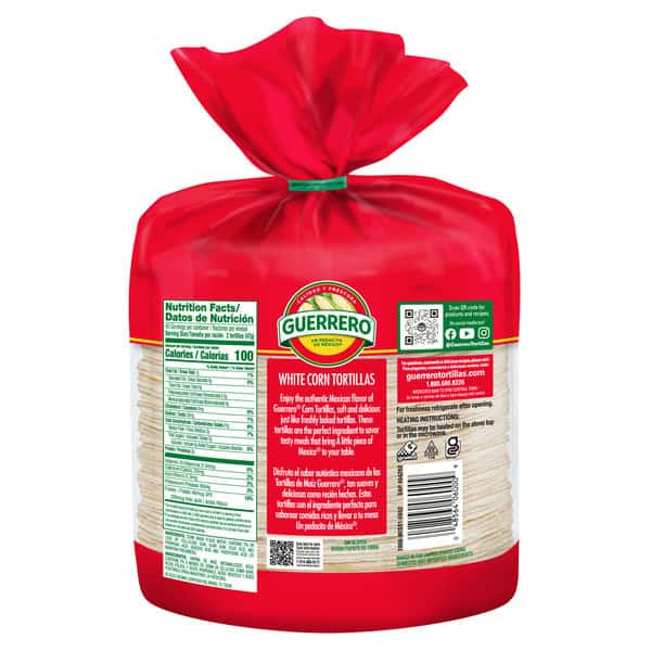 We use high-quality ingredients and time-tested techniques to make sure every package of Guerrero White Corn Tortillas are an authentic addition to your family’s dinner table. Our tortillas have a soft texture and traditional flavor that enhances any recipe, from Mexican dishes passed down through the generations to any modern twist you can come up with. Guerrero White Corn Tortillas are also gluten-free and don’t contain any trans fat or cholesterol. We recommend loading our corn tortillas with homemade carne guisada topped with avocado and cotija cheese. Includes one 80-count package of Guerrero White Corn Tortillas.