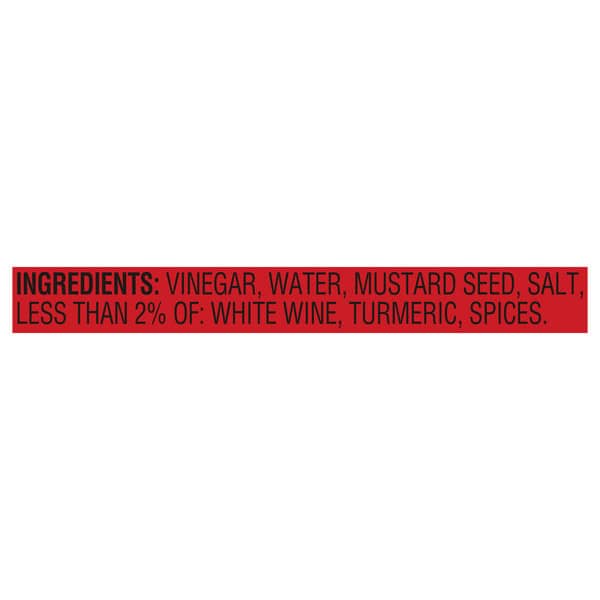 Vinegar, Water, Mustard Seed, Salt, Less Than 2% Of: White Wine, Turmeric, Spices