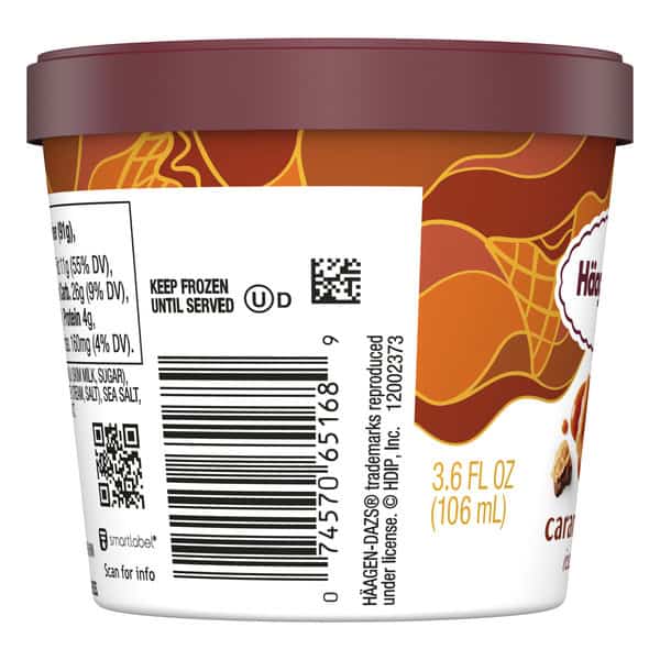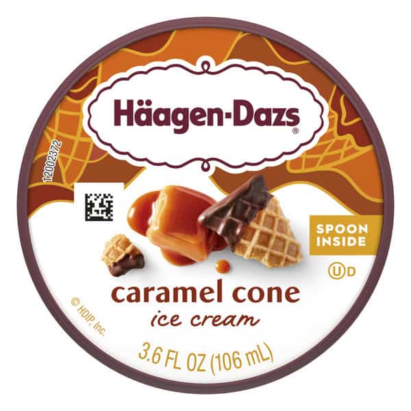 • One 3.6 Oz cup of Häagen-Dazs Caramel Cone Ice Cream
