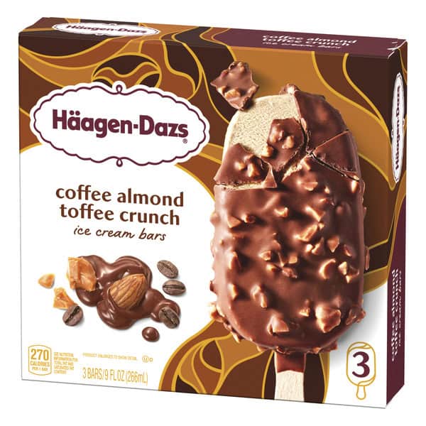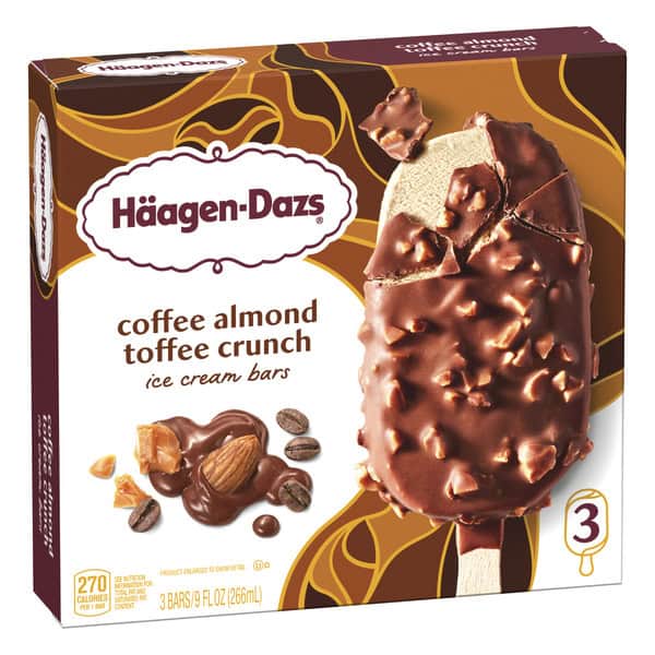 • One 3-count box of Häagen-Dazs Coffee Almond Toffee Crunch Ice Cream Snack Bars