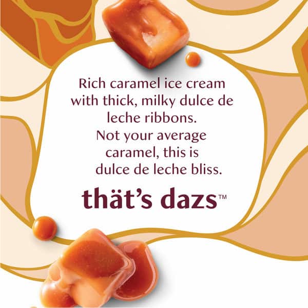 • Rich caramel ice cream with thick, milky dulce de leche ribbons. Not your average caramel, this is dulce de leche bliss.