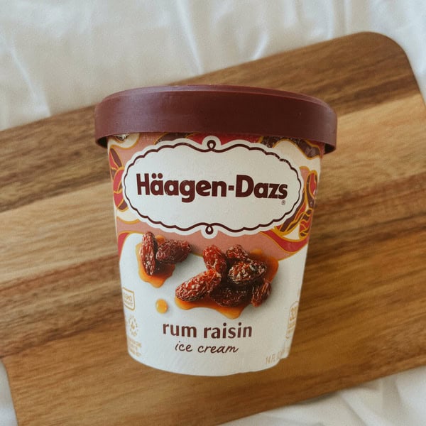 • One 14-ounce package of Häagen-Dazs Rum Raisin Ice Cream