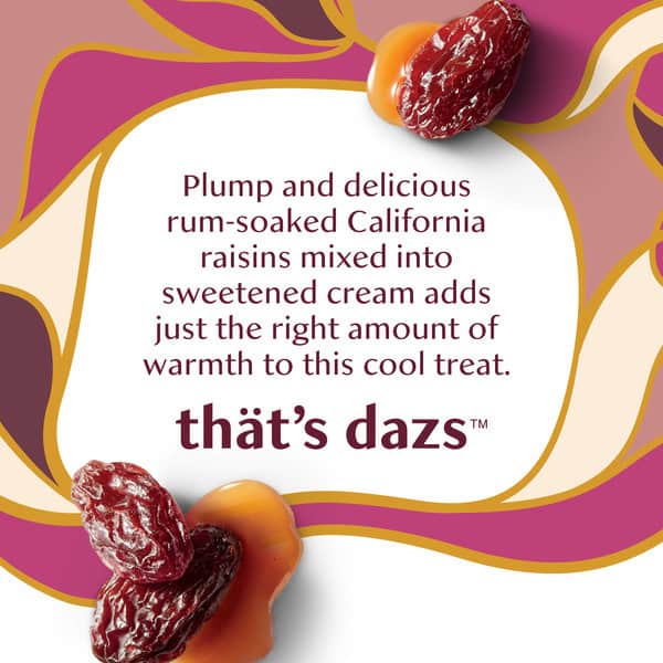 • Plump and delicious rum-soaked California raisins mixed into sweetened cream