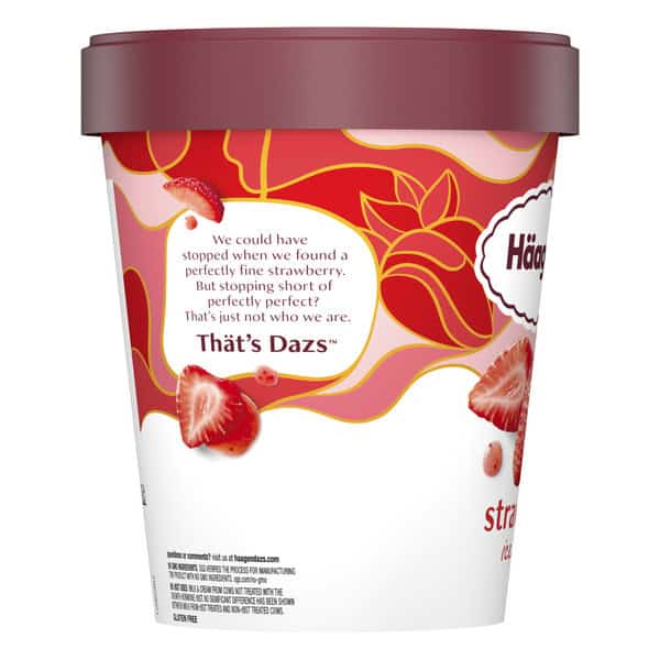 Häagen-Dazs Strawberry Ice Cream introduces sweet summer strawberries into milk and cream. Brimming with real fruit, the true flavor of our strawberries comes shining through. Thät’s dazsâ„¢.
