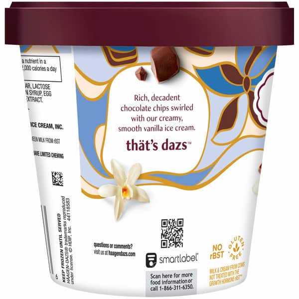 Häagen-Dazs Vanilla Chocolate Chip Ice Cream is made with delectable chocolate chips swirled with our signature vanilla ice cream, creating moments of rich and satisfying flavor that lingers on your tongue. Thät’s dazsâ„¢.