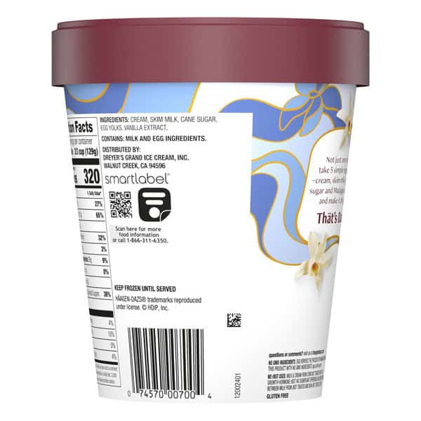 Not just anyone can take 5 simple ingredients – cream, milk, eggs, sugar, and Madagascar vanilla – and make it this good. In 1960, two Polish immigrants from the Bronx decided to create a new luxury in ice cream. They invented a recipe, dreamed up a name, and made it happen. Today, we still stand for that kind of creativity and imagination and continue to transform the finest ingredients into the most luxurious ice cream to be enjoyed by all. Because we believe that luxury is found wherever you are – in moments large and small. Here’s to choosing deliciousness every single time. Häagen-Dazs believes that the highest quality ingredients make the best-tasting ice cream. With that in mind, Häagen-Dazs ice cream is OU Kosher dairy certified and is made with milk and cream from cows not treated with the growth hormone rBST*.