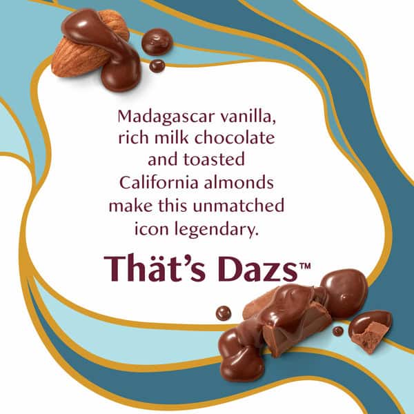 • Haagen-Dazs vanilla ice cream is covered with a coating of rich milk chocolate and almonds