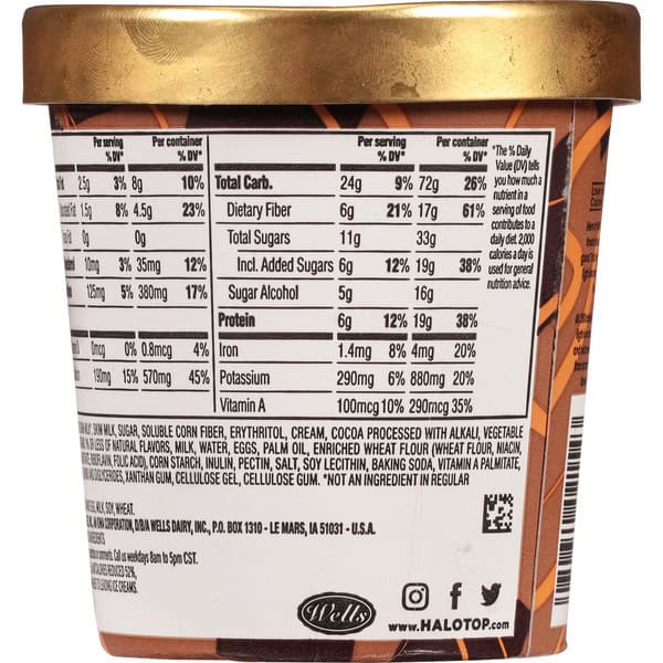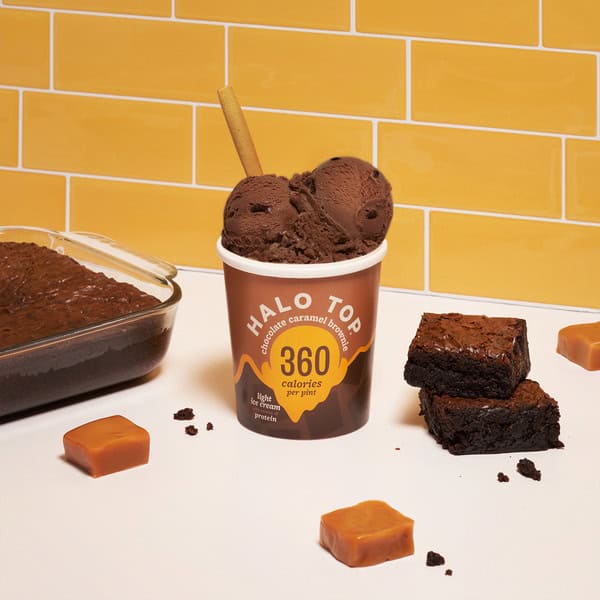 Halo Top Chocolate Caramel Brownie Light Ice Cream lets you enjoy the chocolatey richness and that amazing fresh out of the oven feeling while you pursue your path to wellness. This delicious flavor features chocolate light ice cream packed with luscious caramel swirls and delicious brownie pieces, along with ultrafiltered skim milk and other high-quality ingredients to create a creamy, light ice cream that actually tastes like ice cream. While you prioritize your wellness, love yourself more with this protein-packed frozen dessert that contains 52% fewer calories and 79% less fat than leading ice creams. A delicious Kosher treat, this light ice cream is a great choice for special occasions, at-home date nights or relaxing self care evenings. You can also use this brownie light ice cream to make frozen ice cream treats, like ice cream sandwiches or ice cream sundaes, for a sweet pick-me-up after a long day. Halo Top light ice cream comes in an easy to store, resealable package, so you can keep it until you’re ready to enjoy a classic frozen treat with a modern twist.