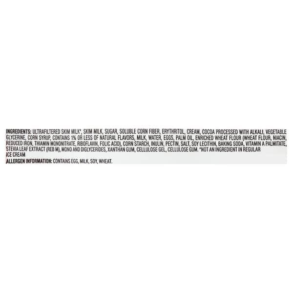 Ultrafiltered Skim Milk*, Skim Milk, Sugar, Inulin, Erythritol, Cream, Cocoa Processed With Alkali, Vegetable Glycerine, Egg Yolks, Corn Syrup, Contains 1% Or Less Of Eggs, Palm Oil, Enriched Wheat Flour (wheat Flour, Niacin, Reduced Iron, Thiamin Mononitrate, Riboflavin, Folic Acid), Salt, Corn Starch, Natural Flavors, Sodium Alginate, Soy Lecithin, Stevia Leaf Extract (reb M), Sunflower Lecithin, Vitamin A Palmitate, Cellulose Gel, Cellulose Gum.