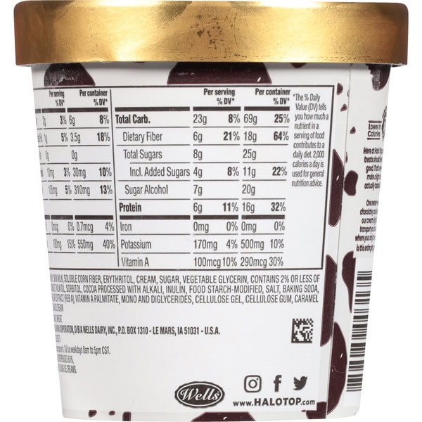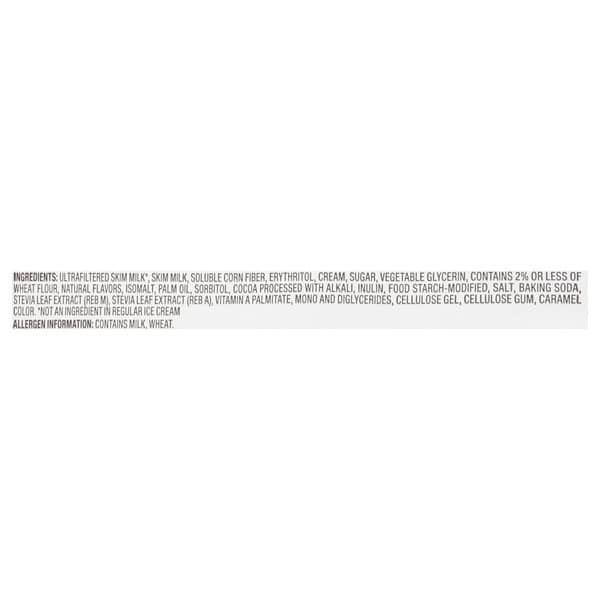 Ultrafiltered Skim Milk*, Skim Milk, Soluble Corn Fiber, Erythritol, Cream, Sugar, Vegetable Glycerin, Contains 2% Or Less Of Wheat Flour, Natural Flavors, Isomalt, Palm Oil, Sorbitol, Cocoa Processed With Alkali, Inulin, Food Starch-modified, Salt, Baking Soda, Stevia Leaf Extract (reb M), Stevia Leaf Extract (reb A), Vitamin A Palmitate, Mono And Diglycerides, Cellulose Gel, Cellulose Gum, Caramel Color.