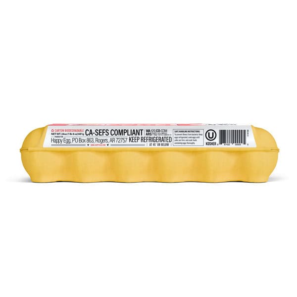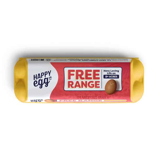 Happy Egg Free Range Grade A eggs are rich in flavor and appearance. These large brown eggs contain plump orange egg yolks with a creamy flavor that will make any dish feel gourmet. These free-range eggs are laid by hens that roam on small family farms and are given nutrient-rich feed, which, when coupled with the birds’ daily grazing on grass and bugs on 8+ acres, leads to a delicious egg for you. These large brown eggs contain 6 grams of protein. Happy Egg large eggs are ideal for use in your favorite recipes, such as hard-boiled eggs, fried eggs, baked eggs, and classic scrambled eggs. Choose Happy with Happy Egg Free Range Eggs.