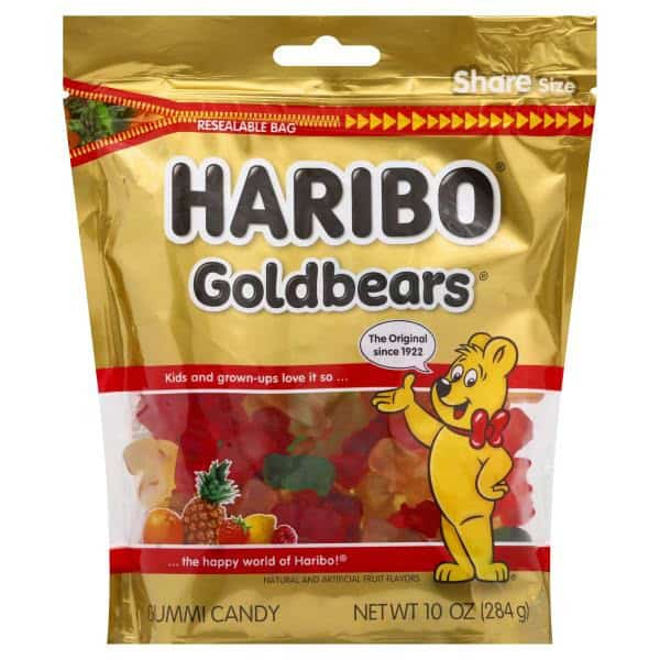 Haribo® Gummi Candy Goldbears®. Natural and artificial fruit flavors. Kids and grown-ups love it.
