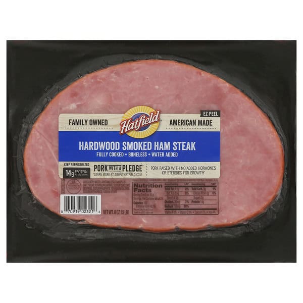 14 g protein per 3 oz serving. Family owned. Fully cooked. Water added. Pork with a pledge. Pork raised with no added hormones or steroids for growth (learn more at simplyhatfield.com). U.S. inspected and passed by Department of Agriculture. simplyhatfield.com. Questions? Call Toll Free: 1-800-743-1191 Mon – Fri 8 am – 4 pm. Learn more at simplyhatfield.com. American made.