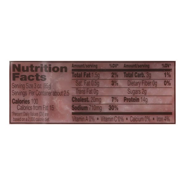 Cured With: Water, Contains Less Than 2% Of Salt, Sugar, Dextrose, Potassium Lactate, Sodium Phosphate, Potassium Chloride, Sodium Diacetate, Sodium Erythorbate, Sodium Nitrite.