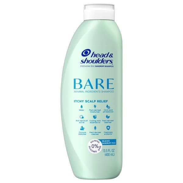 Introducing Head & Shoulders BARE Itchy Scalp Relief – a new kind of anti-dandruff shampoo with only 9 ingredients. It’s sulfate free+, silicone free, and dye free, giving you effective dandruff protection with the BARE minimum. Take it to the MAX with minimal ingredients.Brought to you by the #1 Dermatologist Recommended Anti-Dandruff brand**, Head & Shoulders BARE Itchy Scalp Relief shampoo is formulated for itchy, dry and oily hair & scalp. Featuring essential mint oil, this hydrating formula provides instant cooling relief & protects you from dandruff while leaving your scalp & hair feeling clean and moisturized.Dermatologically accredited by the Skin Health Alliance, this formula is Dermatologist Verified Safe & Effective.Hardworking, high quality and trusted ingredients were carefully selected to ensure this formula gets the job done. The clinically proven, dandruff-fighting ingredient Zinc Pyrithione (aka ZPT), fights flakes^ & dryness to ensure your scalp & hair are at its best.Packaged in Head & Shoulders’ most sustainable bottle yet: this new ECOBOTTLE is made with 45% less plastic. Less plastic means our bottle is lightweight, easy to squeeze, and rollable for the last drop.Minimal ingredients. Minimal plastic. Dandruff protection. Job Done. +sulfated surfactants^washes away oil and flakes with regular use* 45% less plastic per mL vs our 370 mL bottle **based on a national survey of dermatologists, conducted by an independent research agency in April 2024