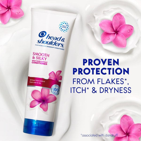 Looking for a conditioner that leaves your hair smooth and up to 100% flake-free?* Look no further than Head and Shoulders Smooth and Silky Conditioner. Head and Shoulders Smooth and Silky Conditioner nourishes hair with intense moisture and leaves hair sleek, shining and free of frizz for 24 hours. Plus, Head and Shoulders is the number one anti-dandruff shampoo recommended by dermatologists, so you know your hair will be protected from flakes.Ignite your senses and feel it working with every wash. Moisturize your hair and scalp while enjoying the great floral scent of Head and Shoulders Smooth and Silky Conditioner. Head and Shoulders’ unique formula works 7 surface layers deep in your scalp to help stop dandruff at its source and maintain healthy hair. Head and Shoulders Smooth and Silky works to prevent dryness, flakes and itch, associated with dandruff. With a pH-balanced formula brought to you by America’s #1 dermatologist-recommended brand, you can count on Head and Shoulders to combat seborrheic dermatitis and other irritable and itchy scalp conditions associated with dandruff.Our unique formula, with zinc pyrithione, delivers multiple benefits:Fights drynessCalms itching+Relieves irritation+Reduces redness+Controls oiliness^Removes flakes+^* visible flakes; with regular use** based on volume of sales+ associated with dandruff^ washes away oil and flakes shampoo and conditioner system vs. non-conditioning shampoo