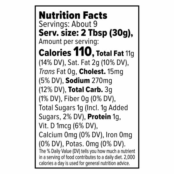 Soybean Oil, Water, Vinegar, Pasteurized Milk, Sugar, Enzyme Modified Egg Yolks, Egg Yolks, Chipotle Chili Peppers, Contains Less Than 2% Of Salt, Nonfat Dry Milk, Garlic Powder, Modified Food Starch, Spices, Dried Onions, Lactic Acid, Lime Juice Concentrate, Xanthan Gum, Mustard Flour, Natural Smoke Flavor, Butter (cream, Salt), Sodium Phosphates, Corn Powder, Cultures, Enzymes, Natural Flavor, Smoked Paprika, Jalapeno Peppers, Citric Acid, Potassium Sorbate, Sodium Benzoate And Calcium Disodium Edta (to Protect Flavor)