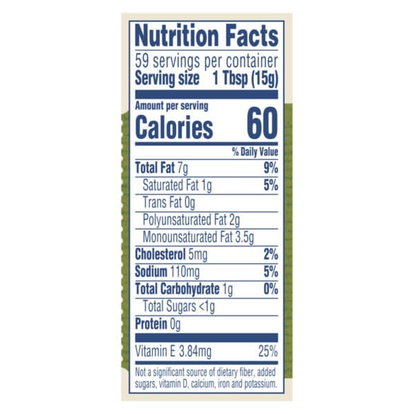 • Mayonnaise dressing with an excellent source of Omega 3 ALA (contains 360mg ALA per serving, which is 22% of the 1.6g daily value for ALA)
