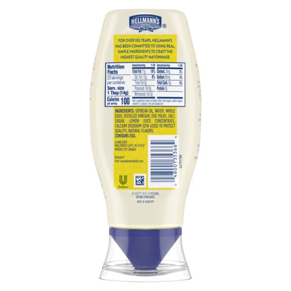 Hellmann’s Real Mayonnaise is proudly made with real, simple ingredients like cage-free eggs, oil and vinegar. We know that to really Bring Out The Best,” we need to do more than just taste great. That’s why our delicious Blue Ribbon Quality Mayonnaise is made with real eggs, oil and vinegar sourced from trusted American farms. And it comes in a convenient real mayo squeeze bottle that makes it easy to add it to your favorites. Even after 100 years, we’re still committed to using premium ingredients to craft the highest quality mayonnaise. It’s simple. We use the finest, real ingredients in Hellmann’s Real. In fact, we use 100% cage-free eggs and are committed to 100% responsibly sourced soybean oil. Our authentic mayonnaise is rich in Omega 3-ALA (contains 650mg ALA per serving, which is 40% of the 1.6g Daily Value for ALA), and is also gluten free and certified kosher. And nothing beats the taste of real mayo. It’s the ideal condiment for sandwich spread and wraps, grilling juicy burgers, mixing creamy dips, and preparing fresh salads. Use it to make outrageously delicious meals like our Parmesan Crusted Chicken and Best Ever Juicy Burger, and even turn your Thanksgiving leftovers into a deliciously creamy meal with our Turkey Casserole. Hellmann’s is known as Best Foods West of the Rockies. Discover our recipes, products, information about our sourcing, and more on our website, Hellmanns.com.