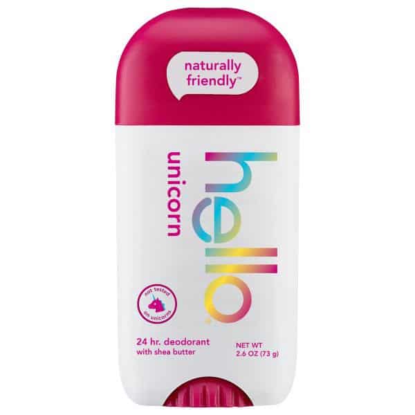 • one 2.6 oz hello Unicorn Aluminum Free Deodorant for Men and Women