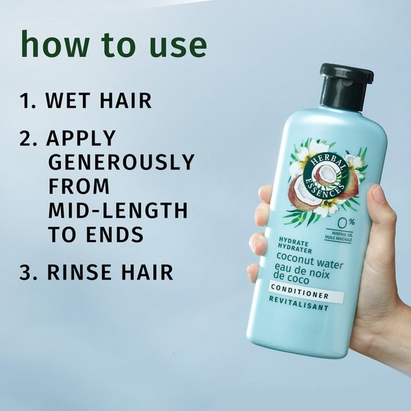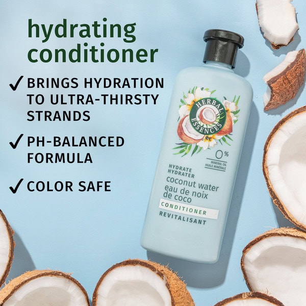 Give your hair all the hydration it needs with Herbal Essences Coconut & Jasmine Conditioner. Say goodbye to thirsty hair thanks to the perfect infusion of coconut water, jasmine, and aloe vera. This pH-balanced, color-safe formula is completely free of mineral oil. Plus, it is certified cruelty-free by PETA, so it’s great for your hair and for the planet. To use, just apply generously to wet hair from root to tip and rinse.
