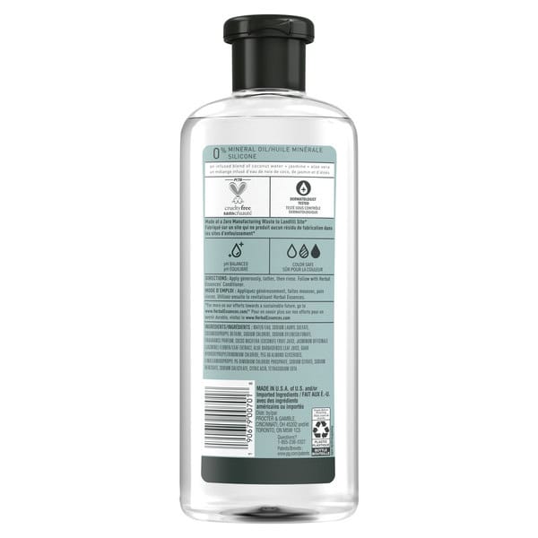 Give your hair a classic clean with lasting hydration from Herbal Essences Coconut & Jasmine Shampoo. Say goodbye to thirsty hair thanks to the perfect infusion of coconut water, jasmine, and aloe vera. This pH-balanced, color-safe formula is completely free of mineral oil and silicone. Plus, it is certified cruelty-free by PETA, and the bottle is 100% recyclable*, so it’s great for your hair and for the planet. To get gorgeously hydrated hair, simply apply generously, lather, rinse, and follow with Herbal Essences Coconut Water & Jasmine Conditioner.