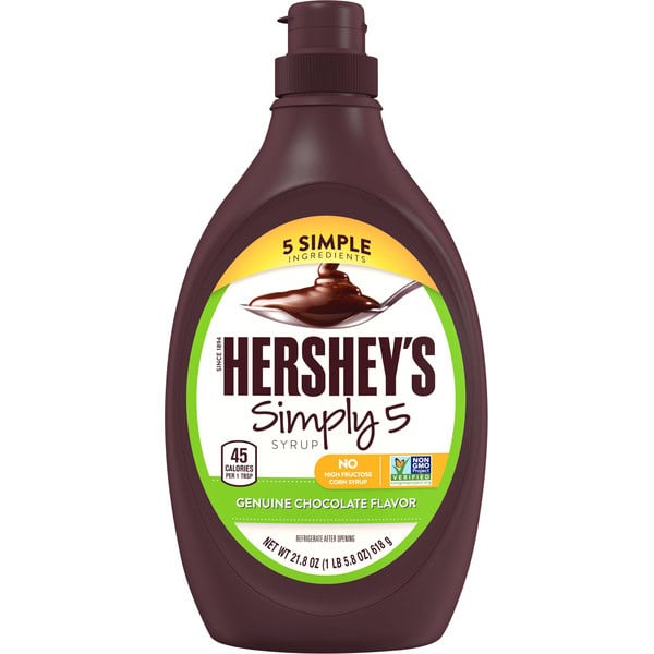 Contains one (1) 21.8-ounce bottle of HERSHEY’S Simply 5 Chocolate Syrup, Pour the classic taste of HERSHEY’S Simply 5 genuine chocolate flavor onto your ice cream and desserts or into your milk and coffee, Gluten-free, kosher and non-GMO verified genuine chocolate-flavored syrup with no high fructose corn syrup, packaged in a closeable and squeezable bottle for easy pouring, Bake birthday treats, holiday desserts and other homemade recipes with Simply 5 chocolate syrup, Bake unique Christmas and Valentine’s Day desserts and decadent Easter and Halloween candy treats with HERSHEY’S Simply 5 chocolate syrup that your guests are sure to love, Please refrigerate each individual container of Simply 5 chocolate syrup after opening to retain freshness
