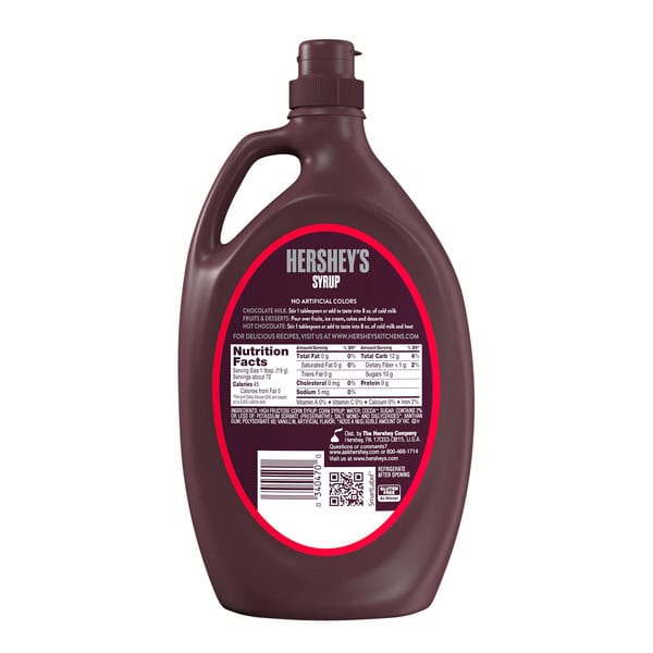 • Please refrigerate your bottle of HERSHEY’S chocolate baking syrup after opening to retain freshness