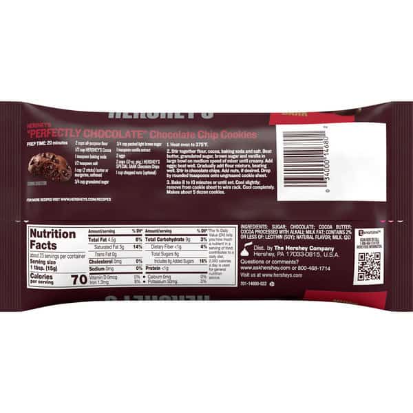 HERSHEY’S SPECIAL DARK chocolate baking chips deliver the classic HERSHEY’S chocolate flavor you know and love. They’re easy to toss into all types of dessert mixes and tasty treats, no matter the occasion. Enjoy mildly sweet HERSHEY’S chocolate flavor in anything you can whip up in the kitchen. Pour some morsels into your morning pancake batter (a favorite among kids), add them to your favorite brownie mix or savor a handful straight from the bag. You can even sweeten up your cake mixes, muffins, cookies and more. Gently melt these tasty chocolate morsels to drizzle over pretzels and fruit, make cake icing or add a few morsels to your hot cocoa. HERSHEY’S SPECIAL DARK chocolate baking chips help bring your baking projects to sweet new heights. This baking chocolate is gluten free and made with no artificial flavors, colors or preservatives. With a few sealed bags of HERSHEY’S chocolate baking chips stocked in the pantry, you can indulge in these delicious morsels that bring a whole lot of baking fun to the kitchen. HERSHEY’S SPECIAL DARK chocolate baking chips are great to have on hand for every occasion so that you’re ready to create delicious treats for the entire family.