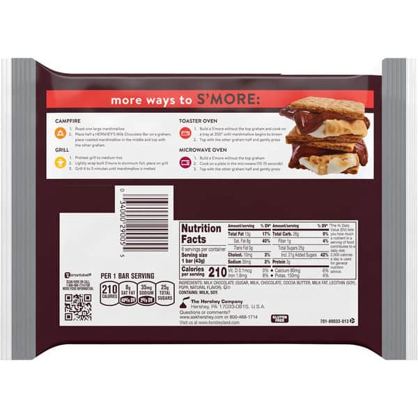 • Contains six (6) 1.55-ounce full-size HERSHEY’S Milk Chocolate Candy Bars