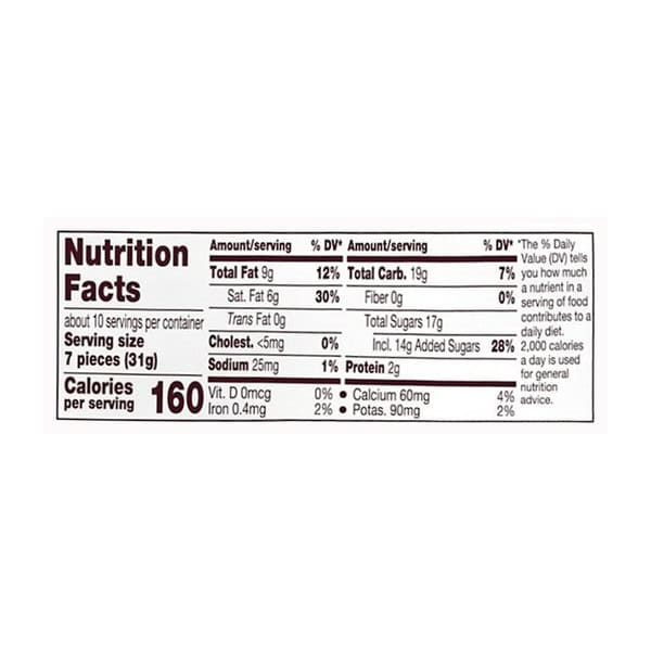 Milk Chocolate (sugar, Milk, Chocolate, Cocoa Butter, Milk Fat, Lecithin (soy), Pgpr, Natural Flavor), Sugar, Vegetable Oil (palm Oil, Shea Oil, Sunflower Oil, Palm Kernel Oil, &/or Safflower Oil), Skim Milk, Corn Syrup Solids, Lactose (milk), Contains 2% Or Less Of: Lecithin (soy), Pgpr, Vanillin (artificial Flavor).