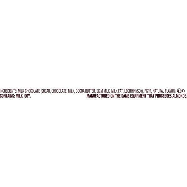 Contains: milk, soy. Manufactured on the same equipment that processes almonds, 800-468-1714 www.askhershey.com www.hersheyland.com