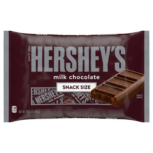 • Contains one (1) 10.35-ounce bag of HERSHEY’S Milk Chocolate Snack Size Candy Bars