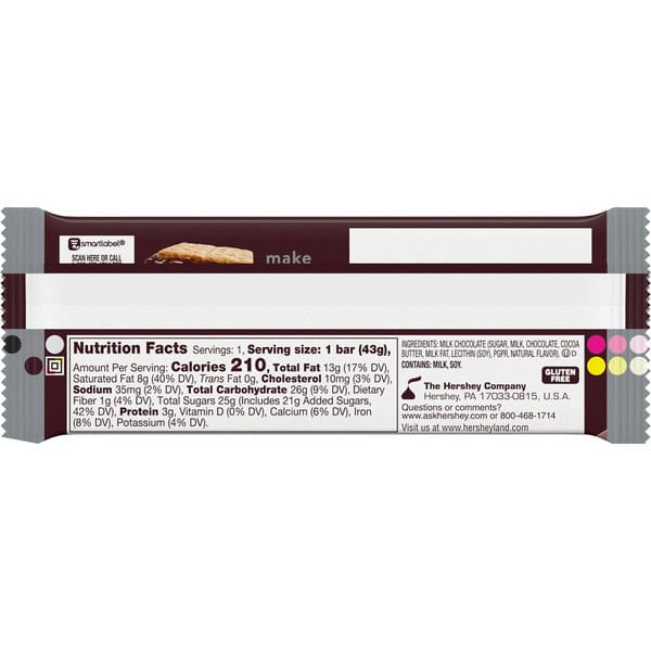 • A kosher-certified, gluten-free milk chocolate candy bar wrapped for lasting freshness and on-the-go snacking during any adventure