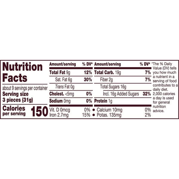 Sugar, Chocolate, Cocoa Butter, Cocoa Processed With Alkali, Milk Fat, Lecithin (soy), Pgpr, Natural Flavor