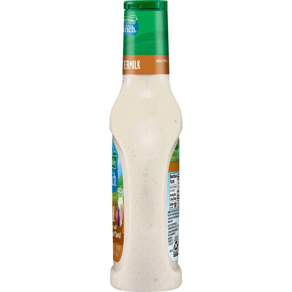 Enjoy the rich taste of buttermilk anytime with Hidden Valley® Buttermilk Ranch Topping and Dressing. The flip cap lid is easy to open and close while delivering a more controlled pour for fewer messes. For delicious side dishes, mix Hidden Valley® Buttermilk Ranch topping and dressing with pasta or potatoes. Or toss with mixed greens, chopped tomatoes and chicken for a quick, easy dinner. Hidden Valley® ranch topping and dressing also makes a delicious addition to sandwiches, tacos and burgers, or as a dip with a vegetable tray or tortilla chips. This gluten free dressing made with real buttermilk is as versatile as it is tasty.