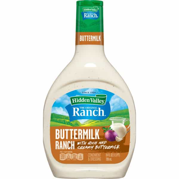 • DINNER MADE EASY: Add instant flavor to your favorite salad, meal or side dish with a touch of creamy Hidden Valley® Buttermilk Ranch Topping and Dressing in a convenient family sized bottle
