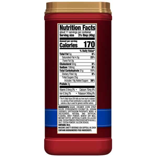 Sugar, Whey, Corn Syrup Solids, Coconut Oil, Nonfat Dry Milk, Instant Coffee, Contains Less Than 2% Of The Following: Natural And Artificial Flavor, Cellulose Gum, Cocoa (processed With Alkali), Salt, Cocoa, Silicon Dioxide (anti-caking Agent), Sodium Caseinate (a Milk Derivative), Dipotassium Phosphate, Mono- And Diglycerides, Sodium Silicoaluminate (anti-caking Agent)