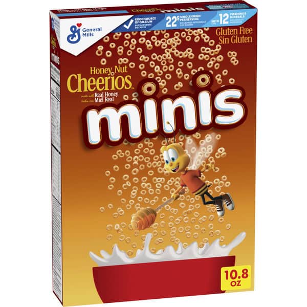 • CONTAINS: One 10.8 oz cereal box of General Mills Honey Nut Cheerios Minis Cereal