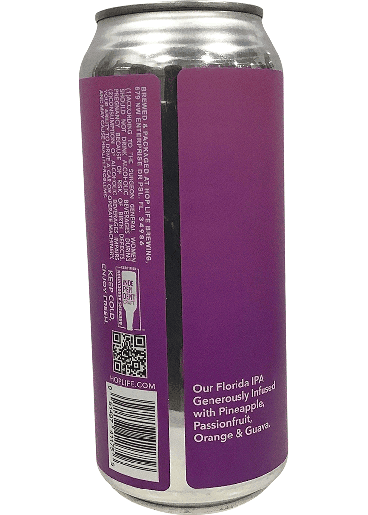 United States – Florida – Hop Life’s Original Florida Style IPA generously infused with Pineapple, Passionfruit, Orange & Guava. This is a true Florida drinking IPA with the notes of a juciy hazy feel.
