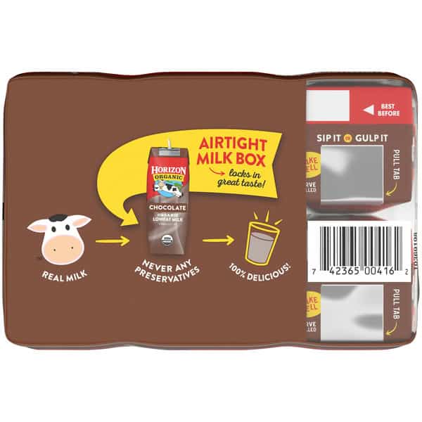 Take the organic goodness of Horizon milk on-the-go with Horizon Organic UHT 1% lowfat Chocolate Milk Boxes. Great as a lunchbox stuffer or snack, these single-serve milk boxes offer a wholesome alternative to juice boxes. Each milk box provides many nutrients, including vitamin A, vitamin D, and 8 grams of protein. And thanks to their special packaging, these shelf-stable milk boxes lock in delicious taste without refrigeration.