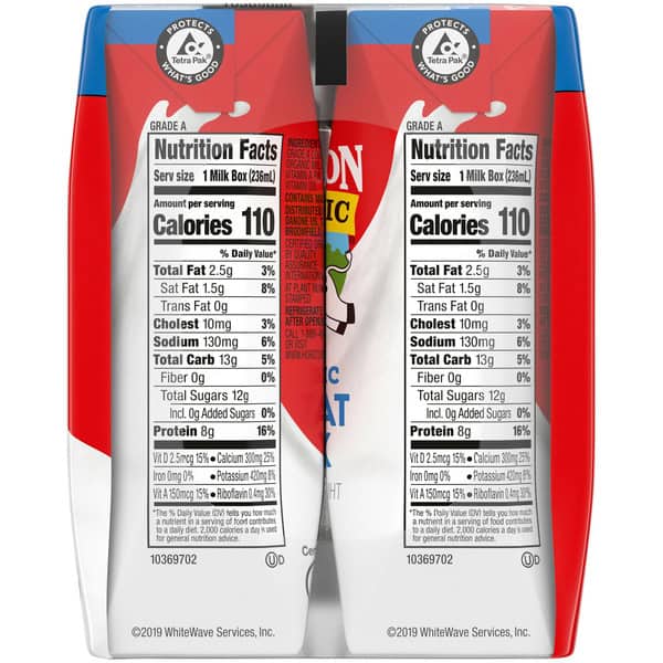 Grade A Lowfat Organic Milk, Vitamin A Palmitate, Vitamin D3.