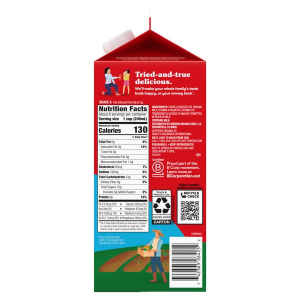 • ORGANIC REDUCED FAT MILK GOODNESS: Always certified USDA Organic 2% milk comes from cows cared for by trusted farmers
