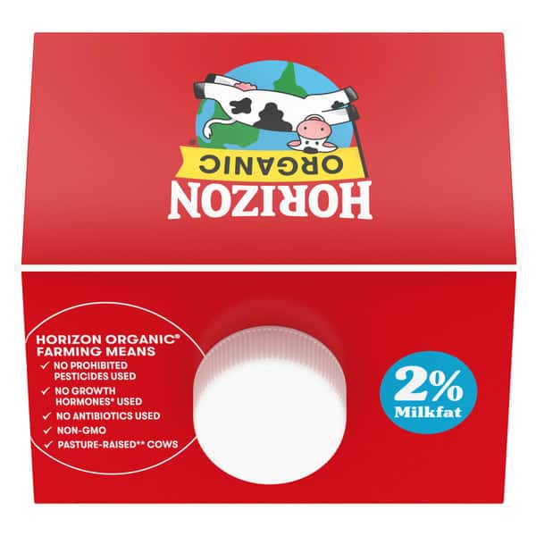 Get the joy of a cold glass of real milk with Horizon Organic High Vitamin D 2 Percent Milk. With 38% less fat than whole milk and 25% of the recommended daily value of vitamin D in every delicious serving, this organic reduced fat milk makes it super easy to get essential nutrients into your day to help support strong bones. Always USDA Certified Organic, every Horizon milk carton comes from cows cared for by trusted farmers. Plus, it comes from cows that are fed non-GMO feed and not treated with antibiotics or growth hormones.* Every 1 cup serving of this ultra-pasteurized 2% milk has 8 grams of protein and provides nutrients including calcium and vitamin A. It’s real organic milk that adults and kids can happily enjoy. At Horizon Organic, we believe that farming done the right way can drive healthier, more sustainable food communities for our world. Pioneering organic for the one horizon we all share. From our farmers to your family, Horizon Organic Milk is nourishing a happy, healthy future. *No significant difference has been shown between milk from rBST-treated & non rBST-treated cows.
