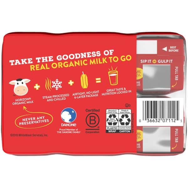 Take the organic goodness of Horizon milk on-the-go with Horizon Organic Whole Milk Boxes. Great as a lunchbox stuffer or snack, these single-serve milk boxes offer a wholesome alternative to juice boxes. Each organic milk box provides many nutrients, including vitamin A, vitamin D, and 8 grams of protein. And thanks to their special packaging, these shelf-stable milk boxes lock in delicious taste without refrigeration.
