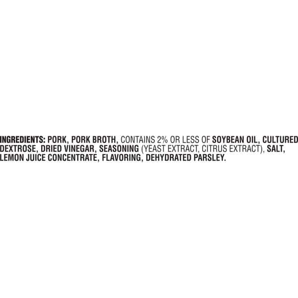 Pork, Pork Broth, Contains 2% Or Less Of Soybean Oil, Cultured Dextrose, Dried Vinegar, Seasoning (yeast Extract, Citrus Extract), Salt, Lemon Juice Concentrate, Flavoring, Dehydrated Parsley