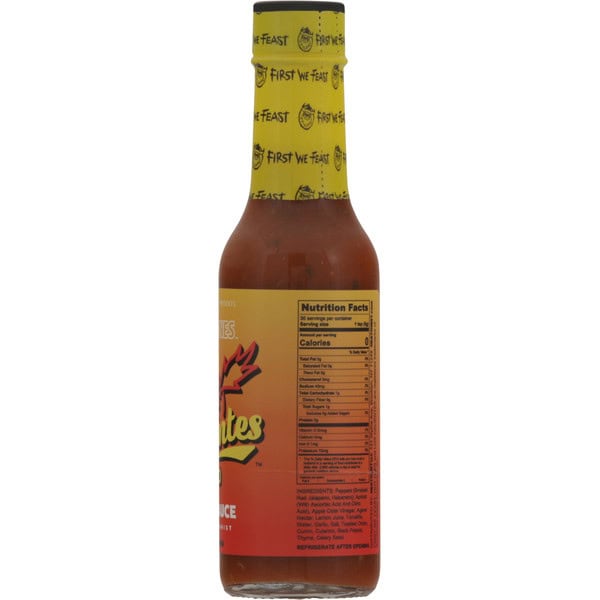• Made with peppers (smoked red jalapeño, habanero), apricot (ascorbic acid and citric acid added), apple cider vinegar, agave nectar, lemon juice, tomatillo, water, garlic, salt, toasted onion, cumin, culantro, black pepper, thyme, celery seed
