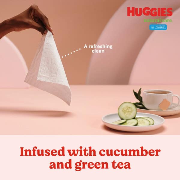 Huggies Natural Care Refreshing Baby Wipes have reliably offered plant-based ingredients since 1990, are made with 99% purified water and are infused with cucumber and green tea for a more refreshing clean. These disposable baby wipes are hypoallergenic, dermatologist-tested and pH-balanced to help maintain healthy skin. Natural Care Refreshing scented baby wipes contain no harsh ingredients while offering a refreshing, clean scent for your baby. They’re also free of lotions, alcohol, parabens and elemental chlorine and do not contain phenoxyethanol or MIT. In addition, our unique base sheet absorbs, locks-in and retains the mess to help ensure your baby’s skin is clean and healthy. Coming in adorable Tigger-themed packaging, the flip-top design and EZ Pull 1-Handed Dispensing makes it easy for you grab wipes without wasting sheets! With these luxurious baby wipes, you can feel confident you’re giving your baby a soft, fresh clean every time. Join the Huggies Rewards powered by Fetch to get rewarded. Earn points on Huggies diapers and wipes, in addition to thousands of other products to redeem for hundreds of gift cards. Check out the Fetch Rewards app to get started today! (*70%+ by weight)