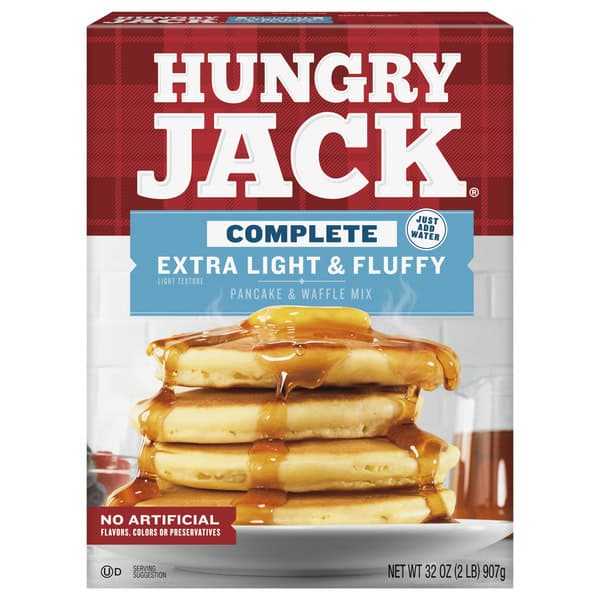 • One 32 oz box of Hungry Jack Complete Extra Light and Fluffy Pancake Mix and Waffle Mix