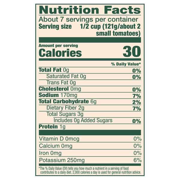• Contains 28 oz of whole tomatoes; 30 calories per serving